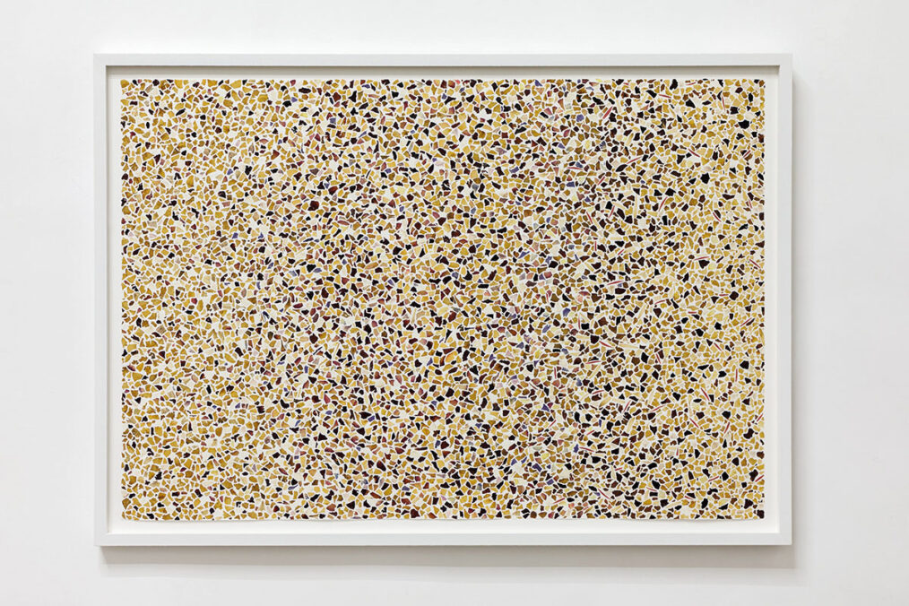 SS: The works in which I’ve addressed the question of fragmentation most recently are definitely the works revolving around terrazzo. Terrazzo is a flooring technique of Venetian origin. It is made from debris, primarily waste from the marble industry, mixed with a binder (lime, cement, or more recently, resin), which is then poured and polished. In Lebanon, it is emblematic of Lebanese homes built at the dawn of the 1950s. This includes my childhood home in the Lebanese mountains as well as my grandparents’ house on the outskirts of Beirut.
